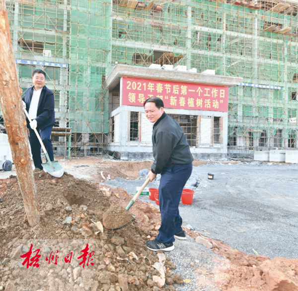 2月18日,市委书记全桂寿来到市冶金新材料基地进行植树。(梧州日报记者 李鸿荣 摄)