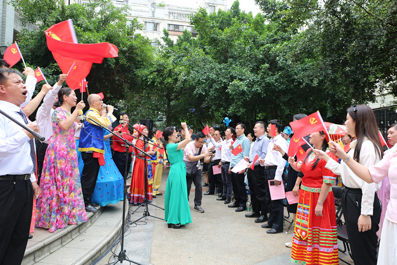 4月12日,市人大常委会机关党员干部到万秀区城南街道南中社区珠玑小区,参加喜迎建党100周年暨“壮族三月三 颂党百年恩”文艺演出活动。