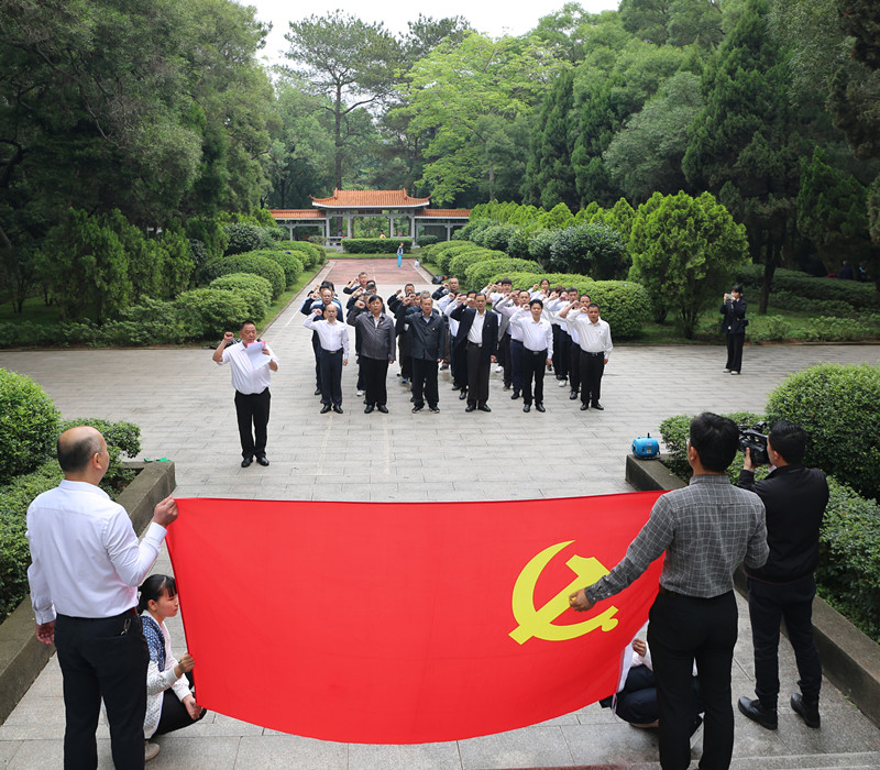 根据市人大常委会党组、机关党组关于开展党史学习教育的部署安排,要充分利用红色教育资源开展重温入党誓词等学习活动,使机关党员坚定理想信念、铭记光辉历史、砥砺革命意志。本次联合万秀区人大常委会机关支部开展的主题活动,是市人大机关开展“感党恩、跟党走”主题活动一项。在革命烈士纪念碑前,全体党员庄严肃立,默哀、鞠躬,深切缅怀革命先烈,深情追思先烈伟绩,向革命烈士敬献花圈。面对鲜红的党旗,全体党员重温入党誓词,以饱满的精气神齐声高唱红色经典歌曲《没有共产党就没有新中国》,回顾中国共产党百年光辉历程,抒发拥护党、热爱祖国的情怀。随后,全体党员开展“我为群众办实事”活动,对革命烈士纪念碑周边进行清洁卫生大扫除。