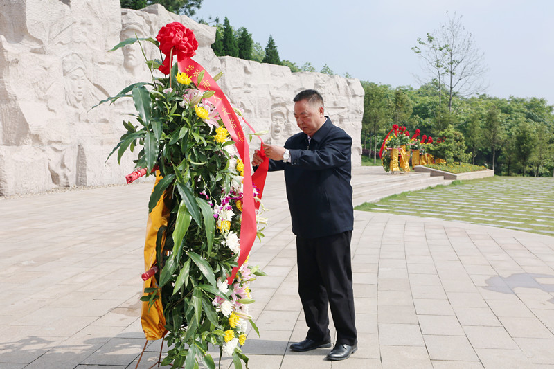 在全州县才湾镇的红军长征湘江战役纪念园,市人大常委会机关向湘江战役红军烈士敬献花篮。