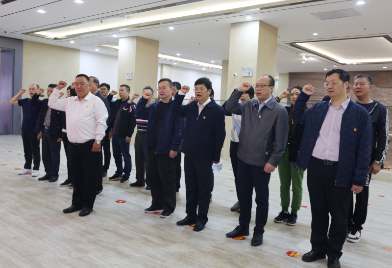 梧州市人大机关党员在红军长征湘江战役纪念馆里重温入党誓词。