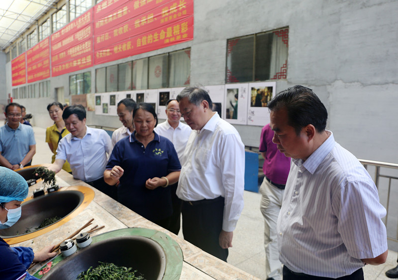 来到广西梧州茂圣茶业有限公司时,张秀隆详细了解企业推动六堡茶制作技艺研发升级的积极探索与成功经验,对企业大力创新六堡茶生产工艺,多渠道推动六堡茶产品“走出去”,以及促进茶产业融合发展的做法给予高度肯定。张秀隆强调,企业要坚持创新驱动,优化提升六堡茶生产工艺,推动茶文化与茶产业融合发展,让六堡茶品质更好、底蕴更深。梧州市各有关部门要“一企一策”解决企业发展急难,在茶企业融资、茶产业融合发展等方面给予针对性帮扶,让茶企的发展路子走得更稳更远。