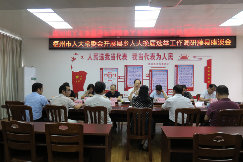 6月16日,市人大常委会副主任徐远洲带领市人大常委会县乡人大换届选举工作第四指导组,到藤县调研县乡人大换届选举工作情况,并分别在藤县人大机关、藤县藤州镇召开座谈会。