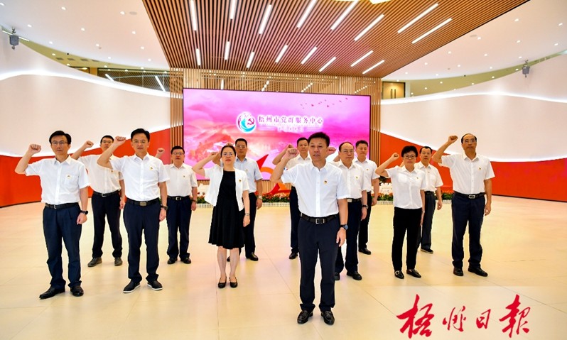 6月28日,在梧州市党群服务中心,市委常委班子重温入党誓词。 梧州日报记者 李鸿荣 摄