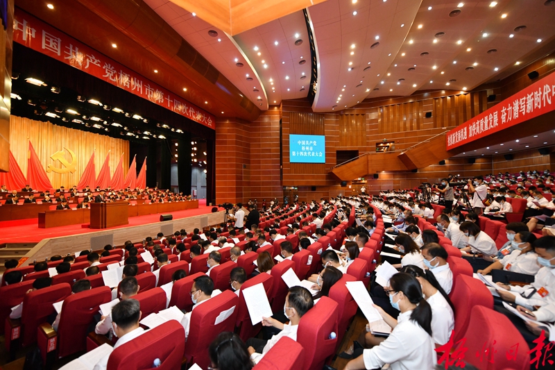 8月29日上午,中国共产党梧州市第十四次代表大会在市文化展览中心开幕。记者 李鸿荣 摄
