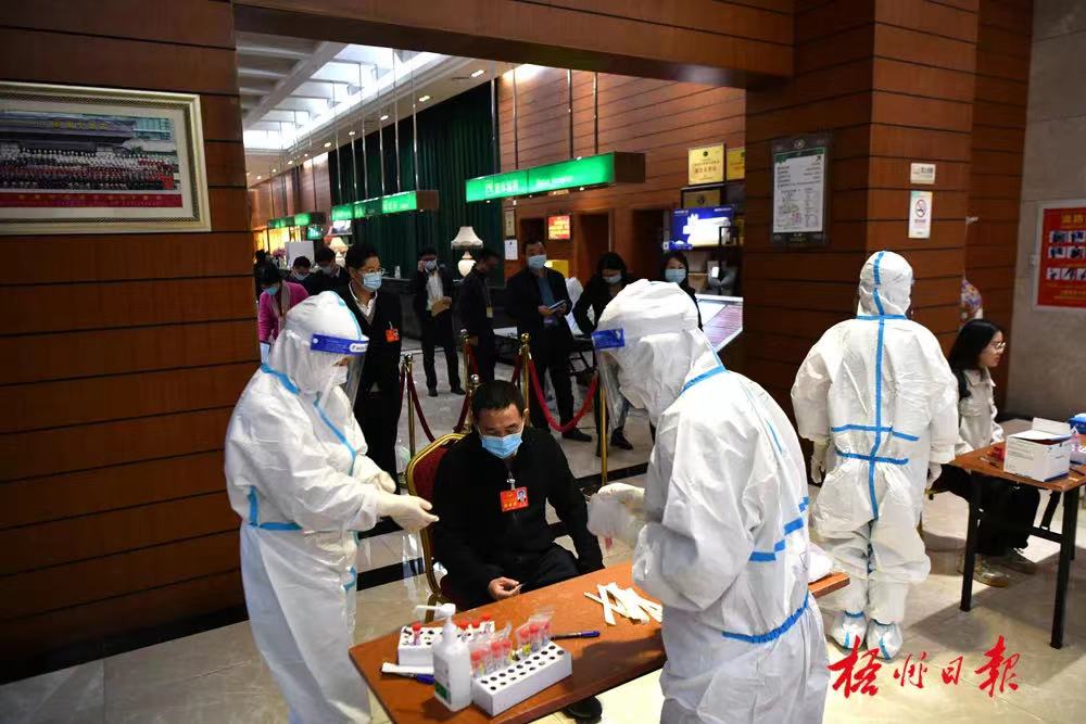 代表委员们到达驻地后统一进行核酸检测。李鸿荣 摄