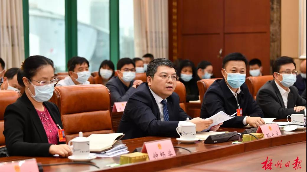 梧州市代表团副团长、市长钟畅姿在审议活动中发言。记者 李鸿荣 摄