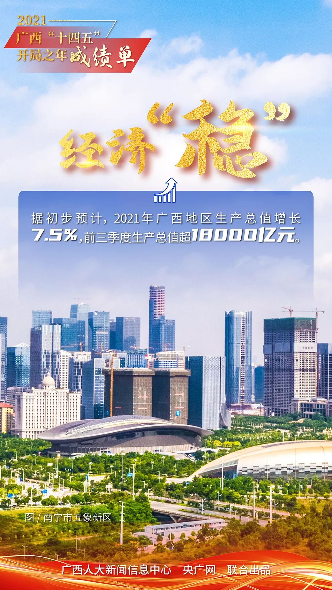 踔厉奋发,笃行不怠。2021年是党和国家历史上具有里程碑意义的一年,也是广西改革发展进程中极其重要的一年。2021年,广西稳住经济基本盘,积蓄发展新动能,推动富民兴桂各项事业取得新进展;持续改善民生,促进社会和谐稳定,奋力建设新时代中国特色社会主义壮美广西,实现了“十四五”良好开局,交出了一份漂亮的成绩单。