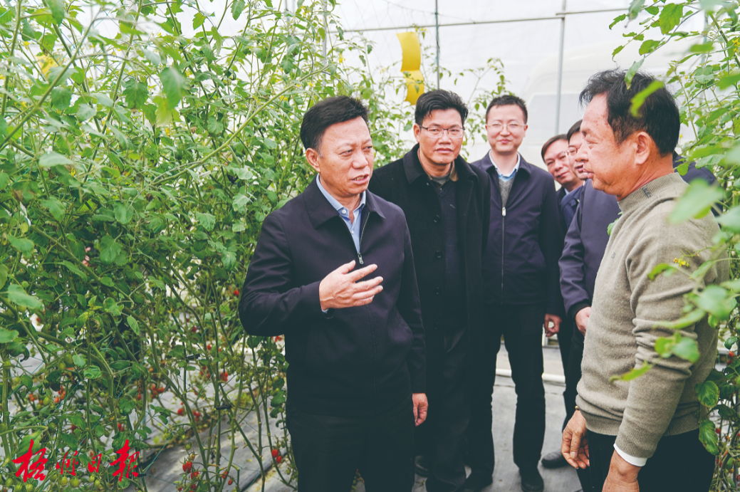 2月15日,市委书记蒋连生到龙圩区大坡镇调研河步农业现代化示范区的建设情况。记者 杨扬 摄